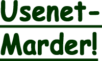 Nun steht in Wikipedia leider nichts Spezielles zum Usenet-Marder als solchem und was ihn auszeichnet, zum Beispiel, Gruppen dominieren zu wollen - wie der oben beschriebene Marder durch Absonderung von Urin und Kot - aber in der falschen Annahme, daß andere - weil sie das bisher nicht taten - auch nicht könnten. (sollte der letzte Link nicht funktionieren, weil dem Marder zum Opfer gefallen, dann geht vieleicht noch das Original.)